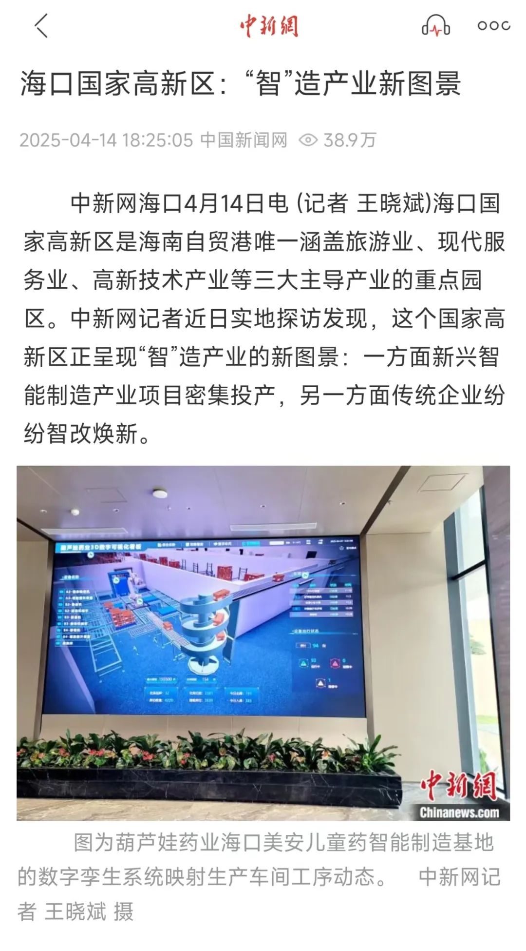 日,中国旧事网报道海口国度高新区正呈现“智”制财产的新图景:一方面新兴智能制制财产项目稠密投产,另一方面保守企业纷纷智改焕新。中新网海口4月14日电(记者 王晓斌)海口国度高新区是海南自贸港独一涵盖旅逛业、现代办事业、高新手艺财产等三大从导财产的沉点园区。中新网记者近日实地看望发觉,这个国度高新区正呈现“智”制财产的新图景:一方面新兴智能制制财产项目稠密投产,另一方面保守企业纷纷智改焕新。图为葫芦娃药业海口美安儿童药智能制制的数字孪生系统映照出产车间工序动态。中新网记者 王晓斌 摄正在海口国度高新区,新兴智能制制财产加快兴起。截至2024岁尾,园区内有近200家高新手艺企业,115家企业通过国度科技型中小企业认定,企业无效发现专利具有量占海口全市45%;国度学问产权劣势示范企业数占海口全市57%;医药财产产值占海南省医药财产总产值78%。华熙生物(海南)科技财产园是此中典型代表。这里的车间按照工业4。0尺度打制,出产线上是各品种型的机械人精准操做,出产全过程实现消息化、智能化,即便封闭车间照也能一般运转,因此被称做“黑灯工场”。客岁以来,海口国度高新区一些生物医药专业化平台连续投产,不只鞭策新兴财产集聚成长,更通过上下逛协同,起从研发到出产的完整链条,为高新区“智”制升级注入新活力。2024年6月完工的美安生态科技新城东湖高新海口生物城项目一期,吸引涵盖数字医疗、生物制药、医用设备等范畴的数十家企业入驻。做为锚定医疗器械行业的专业园区,也吸引浩繁中小药企入驻。正在新兴财产兴旺成长的同时,园区的保守企业也正在“智”制海潮中送来转型升级。成立于2013年的海南森祺制药无限公司(简称“海南森祺”),是一家集药品研发、出产、中药种植及手艺推广于一体的现代制药企业,以保守黎药沉点研究药材之一胆木为原料,立异研制现代中药;从胆木育苗、种植、加工、出产到发卖,打制出一条完整的胆木财产链。为提拔效率,海南森祺投资3300万元扶植数字化糖浆剂出产线,配备全从动理瓶机械人、称沉配液系统等先辈设备,设想年产值达10亿元。海南森祺副总司理柯泽涛说,该出产线曾经具备全线联线出产能力,满负荷运转时,产能和产值较保守模式翻番。海南葫芦娃药业集团股份无限公司(简称“葫芦娃药业”)的海口美安儿童药智能制制内,电子大屏上数字孪生系统及时映照着出产车间的工序动态——小儿肺热咳喘颗粒等产物正在从动化流水线上完成包拆后,由机械臂拆箱,再通过传送带和提拔机系统运送至立体仓库。“保守中药车间需要大量人力完成出产环节,而这里的环节岗亭工人已削减约三分之二。”该相关担任人引见,智能车间通过传感器和物联网手艺实现温湿度、设备运转形态的从动调控,工人次要承担系统巡检、数据阐发等办理本能机能。目前,车间内每条出产线仅需数名手艺人员即可保障运转,出产效率较保守模式大幅提拔。从新兴财产的链式冲破,到保守企业的智能焕新,海口国度高新区绘就“智”制财产新图景的背后,是鼎力引进、培育智力资本。2024年,园区以科技立异引领新质出产力成长,累计培育省级及以上科技型、立异型中小企业203家。人才取平台的双向奔赴成效显著:新增苏生生物等2家省级立异平台,占海口全市总数的40%;赛诺实业等3家企业获批省级制制业立异核心,占海南全省总数的60%。本年,海口国度高新区将人才工做放正在环节,打制立异成长支持系统。依托海南大学、海南医科大学等高校院所,园区打算建成海大新药筛选平台、灵长类尝试动物繁育等高能级平台,打制涵盖概念验证、中试到批量出产的公共办事系统,力争创开国家级生物医药手艺立异核心。同时,园区精准培育企业人才梯队,成立“一企一档”消息库,通过“企业秘书”定向办事,完美从科技型中小企业到瞪羚企业的成长径;鞭策研发投入增加,指点企业享受研发加计扣除等政策,取海南省科技厅合做设立生物医药科技立异结合项目,带动企业加大研发力度,不竭为“智”制财产注入泉源活水。(完)4月15日,中国旧事网报道海口国度高新区鼎力培育以绿色为底色的新质出产力,降碳、减污、扩绿取经济增加协同推进,中新网海口4月15日电(记者 王晓斌)绿色工场拔地而起,新能源汽车等财产加快结构……做为海南自贸港的主要窗口,海口国度高新区鼎力培育以绿色为底色的新质出产力,降碳、减污、扩绿取经济增加协同推进,展示出绿色成长新景象形象。2023年12月,海口国度高新区成功入选生态部首批城市和财产园区减污降碳协同立异试点名单,成为海南省独一入选的财产园区。试点工做开展以来,该高新区正在绿色工场培育、节能减排手艺使用、烧毁物集中处置等多个范畴取得冲破性进展。2024年10月,海南省工业和消息化厅发布年度省级绿色工场名单,海口国度高新区5家企业入选,使园区绿色工场总数达到13家,此中4家已跻身国度级绿色工场行列。正在减污降碳实践中,海口国度高新区2023年至2024年完成38台套汽锅低氮工程,年均削减二氧化碳排放约25吨,成为海南省首个完成此项工做的城区;积极鞭策食物无机废水替代污水处置厂碳源示范项目扶植,指点制药企业VOCs(挥发性无机化合物)管理设备升级,无效降低园区负荷。针对小微企业危废及工业固废处置难题,